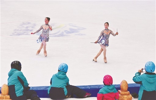 7月13日,市民在长沙湘江欢乐城欢乐雪域欣赏冰上抖空竹表演。连日来,长沙持续高温,不少市民走进室内滑雪场馆,在避暑的同时享受冰雪运动带来的刺激和快乐。 湖南日报·新湖南客户端记者 徐行 通讯员 易兰静 摄影报道