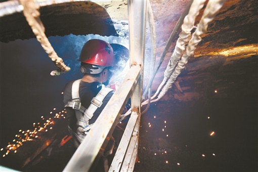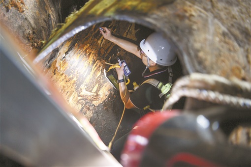 “这次渗水点处于两个超大口径水管交汇处,同时又处于管道拐点,施工难度非常大。”欧阳林介绍,焊接工先要在漏水管线上开一个直径60厘米的“天窗”,然后人钻到管道内壁,对钢管裂缝进行焊接。“因为这根钢管管壁比较厚,达到16至18毫米厚,要从管壁内外同时进行施工。”欧阳林说。