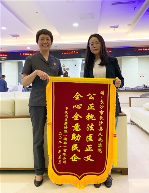 前不久,长沙县法院快立、快裁、快执,仅用12天就为当事人追回欠款40余万元,收到丰沃达医药物流(湖南)有限公司送来“公正执法匡正义 全心全意助民企”的锦旗。