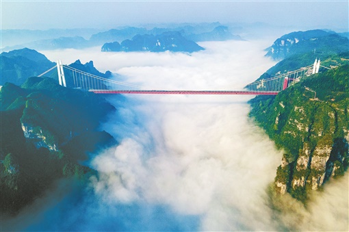 云海中的矮寨大桥。刘振军 摄