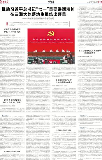 推动习近平总书记“七一”重要讲话精神 在三湘大地落地生根结出硕果