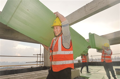7月20日16时许,中建二局长沙金茂建发·铂悦项目施工现场,工人在进行屋顶防水作业。进入炎热夏季,该项目实行错时上班,工人克服酷热,坚守一线。 湖南日报·新湖南客户端