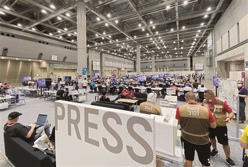 在核酸检测采样处,记者们每日自觉进行取样、交收等流程;在班车中转站,尽管烈日当头、长队浩荡,背着“长炮短枪”装备的同行们,排队像战士一般井然有序;在MPC(主新闻中心),一人一个格子,互不干扰,写稿的、拍照的、录视频的……整个现场,就像一个大型媒体车间。