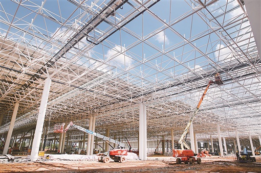 三一智联重卡零部件和工程机械扩产项目广泛应用了新信息技术、人工智能技术、智能制造和大数据技术,致力于打造国家先进制造业高地和智能制造标志性工程。目前A地块1号厂房已投产、2号厂房正在抓紧调试设备并已实现部分投产,B地块已完成主体结构封顶,正在进行钢围护结构施工,预计今年10月份投产。