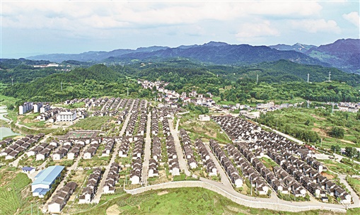 7月27日,花垣县民乐镇民河社区,青瓦白墙、整齐划一的民居,坐落在群山之间。该社区是花垣县最大的易地扶贫搬迁安置区,目前已安置搬迁农户500余户2280多人。
