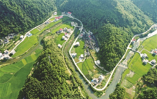 8月2日,城步苗族自治县儒林镇永安村,弯曲的村道、蜿蜒的河流、翠绿的山峦与错落的民居相互点缀,构成一幅美丽的夏日新农村画卷。