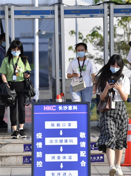 8月2日,浏阳经开区(高新区),长沙惠科光电有限公司,员工戴好口罩依次刷门禁卡,通过展示“双码”和测量体温有序进出公司大门。湖南日报·新湖南客户端记者 童迪 唐璐 通讯员 江毅 摄影报道 |