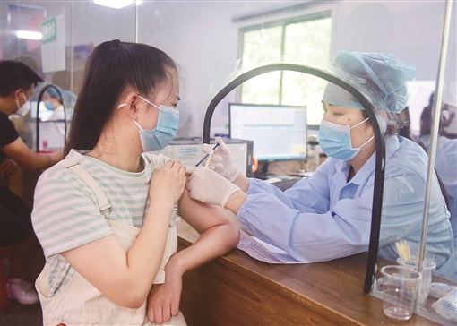 8月2日,嘉禾县珠泉卫生院接种点,青少年在接种新冠疫苗。8月1日,该县全面启动15-17岁人群新冠疫苗接种,有序推进新冠疫苗接种工作。黄春涛 摄