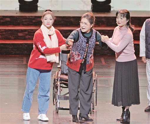 袁金霞的行当是传统戏曲的老生,脸上浓墨重彩,戴着大胡子,体态、唱腔等都有固定程式。第一次出演现代戏中50多岁的中年母亲,让她在排练的第一天就觉手脚无处安放,甚至还会不自觉地捋髯口。女子唱老生,历尽千辛万苦,再从老生转向现代女性角色,更是难上加难。除了听从导演的指导,袁金霞自觉去观察生活中的母亲和残疾人群,来完善角色的体态、声音、眼神。“中年母亲的眼神,会稍显疲惫,身躯稍微弓着,举手投足有些吃力。”袁金霞说,自己最常做的事,就是对着镜子反复练习,直到对自己是“一位行动不便的母亲”深信不疑。