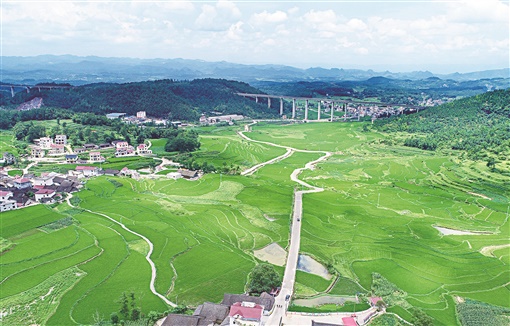 8月5日,花垣县麻栗场镇沙科村,山上树木葱茏,田野稻禾泛绿,满目葱翠。