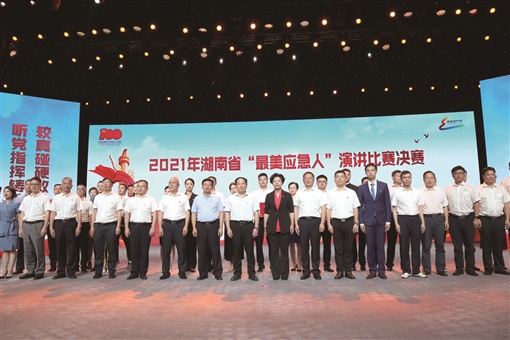 “大家的讲述,展现了一幅幅湖湘应急人铁肩担道义、双手保平安的靓丽画卷,诠释了应急人‘救民于水火,助民于危难,给人民以力量’的责任担当。” “安全生产永远在路上、应急管理永无止境,我们要在人民群众生命财产安全受到威胁时,随时能够拉得出、冲得上、打得赢,切实做到‘听党指挥铸铁军,较真碰硬敢斗争,雷厉风行提效能,清正务实保民安’”。湖南省应急管理厅党委书记、厅长李大剑在“安全生产月”系列活动之一“最美应急人”演讲比赛决赛上如是说。