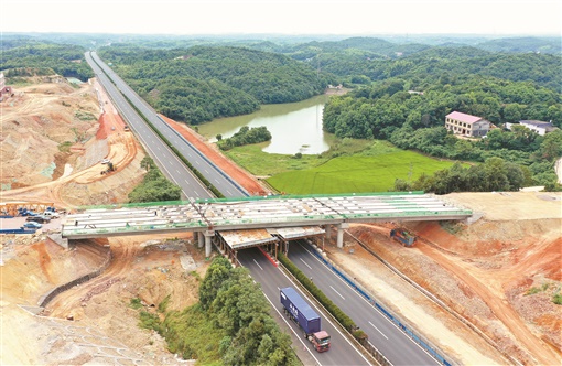 8月12日,湖南湘江新区新学士路西延线长潭西高速大王山互通立交工程跨线桥梁板架设工作已完成,施工人员在桥面进行桥梁钢筋连续焊接施工。该工程是大王山片区“六纵六横”路网骨架的重要组成部分,预计今年底完成主体施工。 湖南日报·新湖南客户端记者 田超 王晗 摄影报道