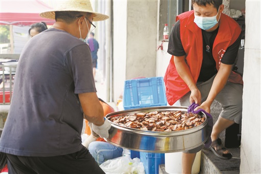 7月31日,面对突然而至的新冠肺炎疫情,45岁的古丈县民营企业家彭南科组建了“盒饭小组”,每天制作2000份免费盒饭,给周边5个集中隔离点的千名隔离群众和工作人员作为午餐、晚餐。