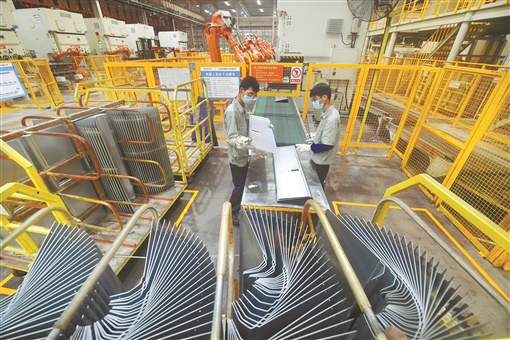 8月13日,位于宁乡经开区的长沙格力暖通制冷设备有限公司钣金车间自动化生产线有序运转。连日来,宁乡经开区各企业在全面抓好疫情防控的基础上,开足马力忙生产、赶订单。湖南日报·新湖南客户端首席记者 郭立亮 通讯员 谢喜阳 摄影报道