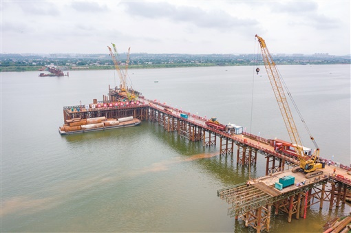 8月17日,长沙暮坪湘江特大桥项目建设现场如火如荼。目前,该项目正在进行下河便道、钢栈桥、钢平台及引桥桩基构造施工。该桥由长沙城发集团承建,总投资约27.4亿元,预计2024年完成建设。