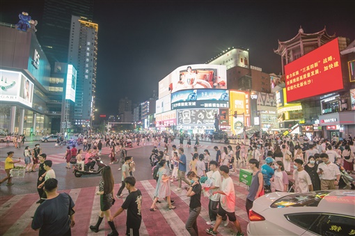 8月21日,长沙市黄兴路商业步行街人头攒动。连日来,随着中风险地区全部清零,长沙这座“网红城市”的街头巷尾烟火味渐浓,逛街的人多了,各大店铺又开始忙碌起来。湖南日报·新湖南客户端记者 李健 摄