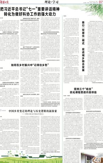 饱含农民情怀探求乡村变迁本质。回顾中国近代史,我们可以发现中国的问题主要是农民问题,如何维护和保障农民权益成为中国革命、建设和改革永恒的主题。回顾中国几千年发展历史,“以农养政”“以农养军”始终没有改变过,直到新世纪初中国取消农业税,才真正结束了农民养国家的历史。通读本书,可以感受到作者字里行间处处流露出深厚的农民情怀,不管什么时候,中国的“三农”政策都要始终把实现好、维护好、发展好广大农民的根本利益作为农村一切工作的出发点和落脚点。新时代要实现乡村振兴,也要充分发挥农民的主体作用和首创精神,紧紧依靠亿万农民推进乡村振兴。