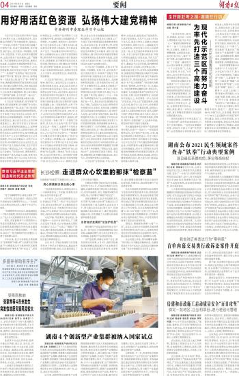 坚持在勇攀高峰中率先落实“六个示范引领”。大力弘扬“心忧天下、敢为人先”的家国情怀,与最优者“对标”、与最强者“比拼”、与最快者“赛跑”,在高质量发展“高地”上立起更多“高峰”。加快三一智联重卡、山河工业城(三期)等重大项目建设,大力实施“挖潜、补缺、培优、倍增”四个计划,积极谋划“海创中心”项目建设。全力支持企业开展核心和关键技术攻关,推进三一、蓝思“5G+AI+区块链”试点,以及铁建、博世等六个“5G+工业互联网+区块链”标杆项目建设。加快口岸经济发展,全力争取第五航权落地,加快长沙机场改扩建暨综合交通枢纽工程建设,高质量服务好中非经贸博览会、博鳌、国际工程机械展等世界级展会。