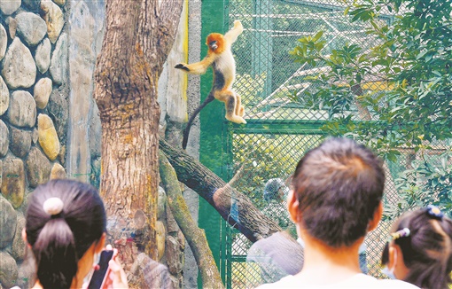 8月28日,游客在长沙生态动物园观赏川金丝猴。当天,该园从大连引进的一对川金丝猴首次与游客见面。川金丝猴属灵长目、猴科,毛质柔软,为中国特有的珍贵动物,群栖高山密林中,为国家一级保护动物。