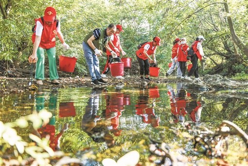 8月29日,道县寿雁镇十里桥村,志愿者在清理河道垃圾。近年,该县深入推进县、乡、村河长制,各志愿者组织参与推进河湖生态修复和保护,有力守护河湖水清和饮用水源安全。蒋克青 于孝波 摄影报道
