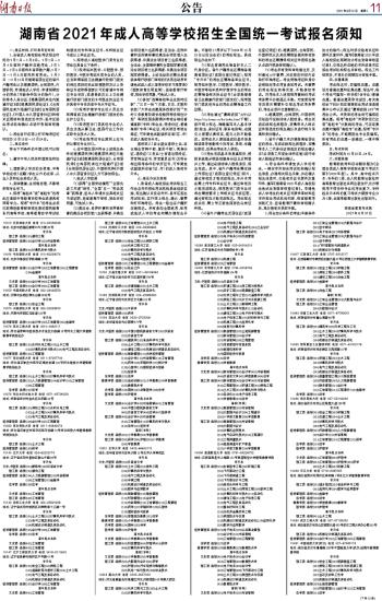 湖南省2021年成人高等学校招生全国统一考试报名须知
