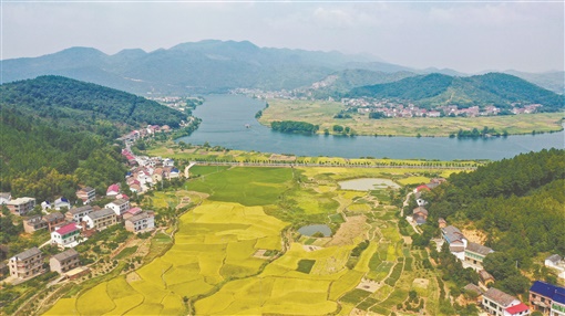 9月6日,衡东县杨林镇柴埠村,洣水清清、田园秀丽、青山滴翠,红瓦房与金黄稻田相映成趣,一幅美丽新农村秋色画卷尽收眼底。湖南日报·新湖南客户端记者 辜鹏博 摄