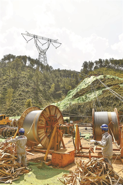 国网湖南省电力有限公司介绍,该工程湖南省境内新建线路2×115.7千米,新建铁塔439基。沿线地形复杂,山地占比达74%,大部分桩位需架设索道运输材料。线路涉及“重冰区”,为国内现有交流特高压施工难度之最,40毫米冰区角钢塔施工没有经验可借鉴。今年2月工程开工以来,近3000名施工人员奋战一线,克服了工期紧、施工技术难度大等重重困难。目前,该工程基础施工已全部完成,铁塔建设完成51%,线路架设开启了送电前的最后一道转序,创造了特高压建设的湖南速度。