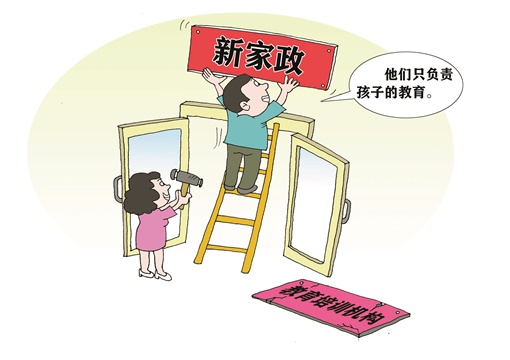 “双减”政策推出后,需要找住家教师的家庭越来越多。记者发现,有中介机构一方面将住家教师包装成“新家政”,另一方面又解释说他们与一般的家政人员不同,不负责家务做饭,只负责孩子的教育问题。这种改头换面的“新家政”,引发新思考:面对学生和家长的现实需求和减轻学业压力的社会呼唤,如何采取更科学的治理之策?画/沈海涛 文/思源