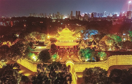 9月16日晚,岳阳楼景区内灯火璀璨,游人如织。今年来,岳阳市为擦亮“洞庭天下水,岳阳天下楼”文旅品牌,围绕做活“夜间经济”对景区实施亮化提质工程。亮化提质后的景区给游客带来不一样的旅游体验。 湖南日报·新湖南客户端记者 徐典波 摄