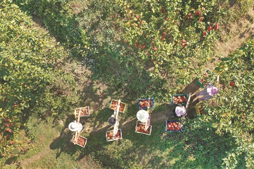 9月23日,涟源市古塘乡牛山园特色水果生态种植基地,果农在采摘金秋梨。当天,该基地1200多亩金秋梨喜获丰收,今年产量35万多公斤,产值560多万元,带动周边100多人就业增收。