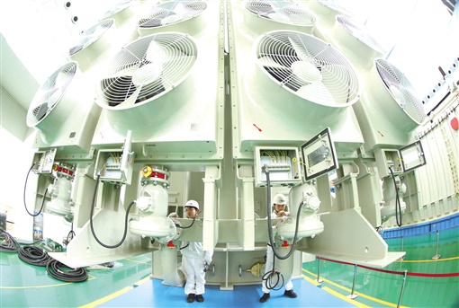 衡阳市奋力打造国家级输变电产业集群、“钢管之都”、国家级有色金属与合金新材料产业基地和全国化工新材料特色产业基地。图为特变电工衡阳变压器有限公司工作人员在调试设备。 曹正平 摄 |