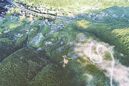 9月27日,桂东县沙田镇胜利村,武深高速与提质改造后的国道106线在青山翠屏中交会,勾画出一幅美丽的现代交通画卷。