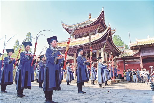 9月28日,孔子诞辰2572周年,浏阳市举行秋季祭孔大典,社会各界来宾相聚在浏阳文庙,祭奠先师孔子,共享先贤留下的千年雅乐。彭红霞 摄