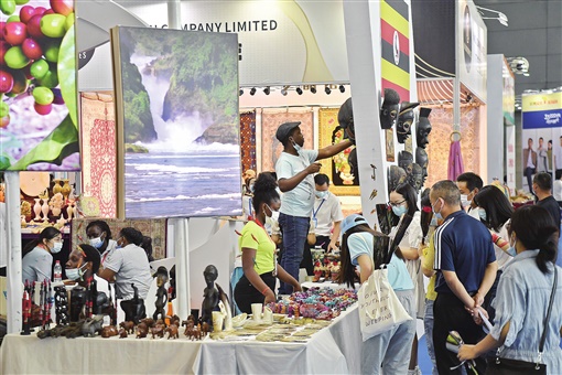 ①9月28日,长沙国际会展中心,观众挑选非洲特色商品。