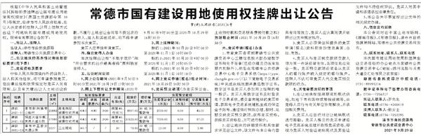 常德市国有建设用地使用权挂牌出让公告