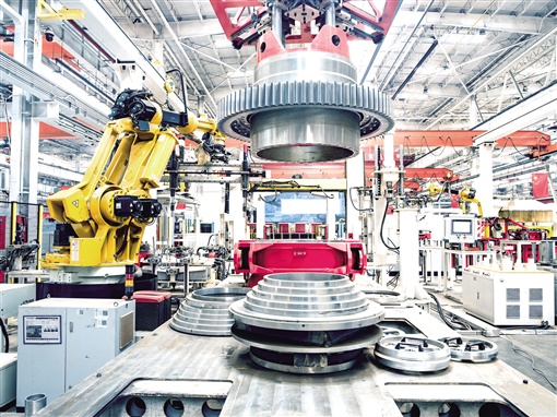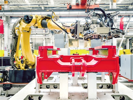 据了解,三一重工北京桩机工厂是全球最大的桩工机械制造基地,生产的旋挖钻机是工信部认证的“制造业单项冠军产品”。经过自动化、数字化、智能化升级后,三一桩机工厂共有8个柔性工作中心,16条智能化产线,375台全联网生产设备。小到一块钢板的分拣,大到十多吨桅杆装配,已全部可由机器人自动化完成。基于树根互联工业互联网平台,生产制造要素实现全连接,整个工厂已成为深度融合互联网、大数据和人工智能的“智慧体”。