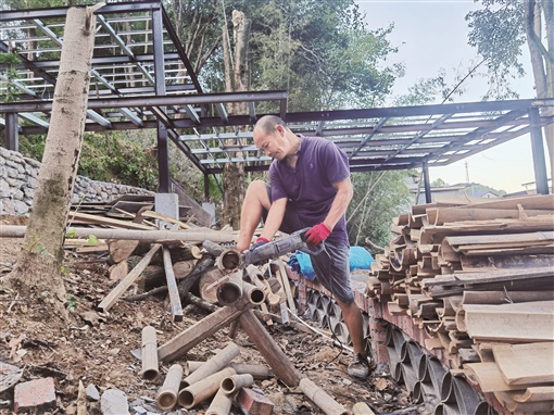 “农村一草一木、一沙一石都是建筑材料,关键看你怎么利用。”廖建民说,他们夫妇和侄子廖军商定,尽可能做到就地取材,少用水泥钢筋,保持乡村原生态。