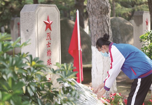 9月30日是烈士纪念日,全国各地举行活动,缅怀革命先烈。图为当日,在沈阳抗美援朝烈士陵园,学生向杨根思烈士墓献花。新华社发
