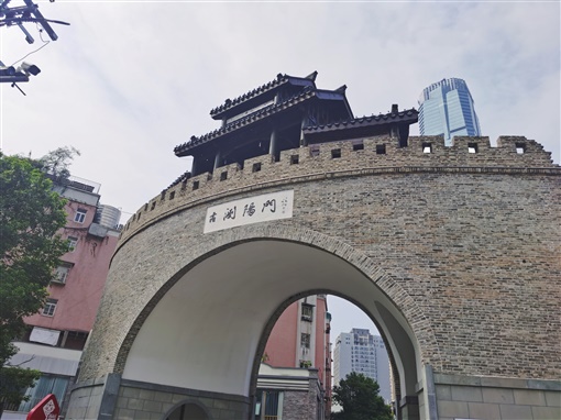 悠悠岁月,城市变迁。原浏阳门外护城河则在清朝末期修筑粤汉铁路时填塞,护城河上便桥名浏城桥,也在辛亥革命前一年的1910年改建为大石桥,上世纪二十年代民国政府修筑环城马路时拆除城门,1990年修建南北主干道芙蓉路时拆除浏城桥。岁月流转至今,长沙启动精美城区建设,芙蓉区以“延续城市文脉,回归城市本源”为宗旨,启动东城有机更新和历史步道建设,重建城门还原古韵。中国书协副主席、省文联主席、省书协主席鄢福初先生一同探访后感慨万千,挥毫题写“古浏阳门”匾额。