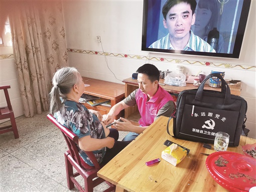 “您有高血压、糖尿病,一定要按规律服药,注意饮食,防止血压、血糖反弹哦。孩子们都在外务工,要注意身体啊。电话号码存在你的手机里,有事随时打电话。”量完血压、血糖,唐爱华叮嘱谭二娇,并在家庭医生随访APP上,记录下各项数值和注意事项。上传后的数据,可以让远在他乡务工的亲属,通过湖南省居民健康卡,随时了解家里老人的健康情况。