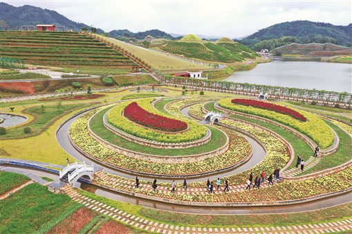 10月16日,安化县茶乡花海生态体验园,游客在赏花观茶。该园占地近2500亩,以茶为基础,花为重点,名贵树种配合,四季有花可赏。虽是深秋时节,这里依然是百花争艳,景色宜人。