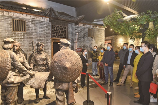 10月16日,汝城县文明瑶族乡沙洲瑶族村,游客在“半条被子的温暖”专题陈列馆参观。目前,湖南特色文旅小镇——沙洲文旅小镇新建的游客服务中心已正式投入使用,众多游客来到该村,参观红色旅游景点,接受红色文化教育。