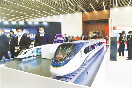 10月18日,参观者在博览会的“中国中车”展区参观。当天,博鳌亚洲论坛全球经济发展与安全论坛博览会在长沙开幕。