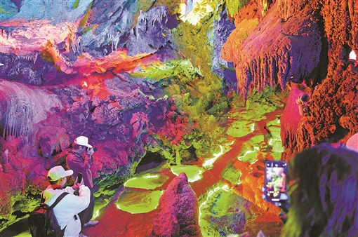 10月17日,石门县龙王洞景区溶洞奇观。据中国地质科研所评估,龙王洞已经有6亿年的历史,是世界上为数不多的活的溶洞之一,洞内水洞相连、千姿百态。湖南日报·新湖南客户端记者 李健 摄