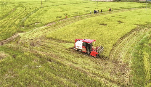 10月18日,涟源市桥头河镇段江村再生稻示范片,农民在收割再生稻。当天,经随机抽样测产,该示范片再生稻“深两优867”亩产达326.7公斤,加上头季稻的平均亩产883.8公斤,平均亩产达到1210.5公斤。张扬 梁建红 摄影报道