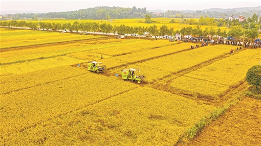 10月19日,东安县紫溪市镇中心村,来自永州市各区县的农机驾驶员在进行水稻机收减损技能大比武。此次比武通过损失率、漏收情况、生产率和割茬高度4个考评项目,检验农机驾驶员机收作业技能,减少粮食收获环节的损失。严洁 蒋雨婷 摄影报道
