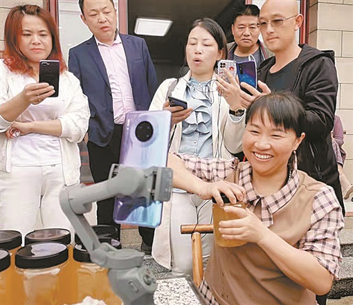 “现在一有空就直播,推介蜂蜜和农产品。”杨朝辉在“湖南蜜蜂姐姐”视频号里,除了介绍自家的蜂蜜和普及辨别真假蜂蜜常识外,也推介乡亲们的腐乳、酸藠头、红薯粉和坛子菜等土特产。朴实的画面、真诚的话语,杨朝辉的粉丝日渐增多。她介绍,有一次,看见邻居大嫂做的红薯粉卖不出去,感到十分无助。其实这里的农产品都是纯手工制作、没添加剂的生态产品。直播带货,土特产成了畅销货。杨朝辉说,农家手工做的腊八豆豉,如今一天要发货80多瓶。