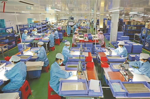 11月4日,茶陵经济开发区株洲晶彩电子科技有限公司,工人在生产线上忙碌。近年,该公司加大资金投入和产品技术研发,生产的电子元器件远销日本、中东、欧美等国家和地区,年产值达2亿元,为附近群众提供了1100个就业岗位。