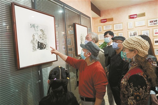 11月6日,画家刘铁臂向观众分享创作心得。当天,“大墨阵——惠己堂文化书画名家作品展”在长沙展出,展出了胡紫桂、曾初良、刘铁臂三位书画家作品120幅。三位书画家艺术风格或豪迈豁达、或天真率性、或生动有趣,体现了当代湖南实力派书画家的风貌,吸引了许多书画爱好者前来观看。