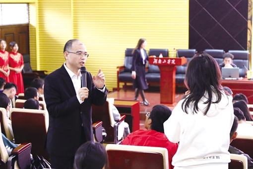 在他看来,大学是迈向社会的第一步,树立职业意识和进行职业规划对大学生来说非常重要,要扎扎实实学好专业知识、培养综合能力。
